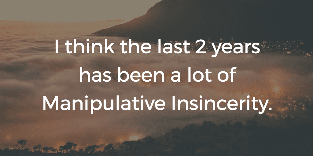 Looking back now, Samir describes the changes he made. “I stopped yelling and being angry with people to their face, but I didn’t get better at empathy. I think the last 2 years has been a lot of Manipulative Insincerity.”